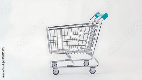 Empty metal shopping cart isolated on a plain background.