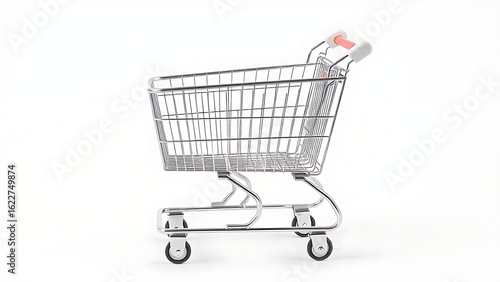 Empty metal shopping cart isolated on a plain background.