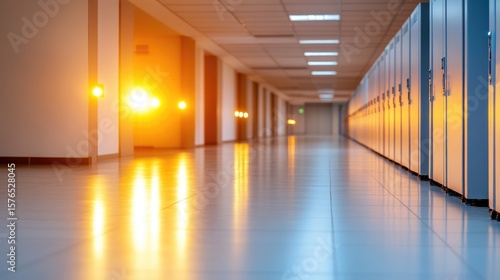 Empty modern corridor with storage units