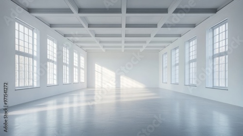 Empty room, high ceiling, white walls, modern design generative ai