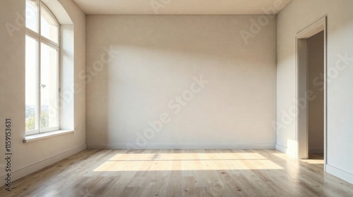 Empty Room with Sunlight Streaming Through Arch Window and Doorway, Ready for Interior Design and Home Furnishing