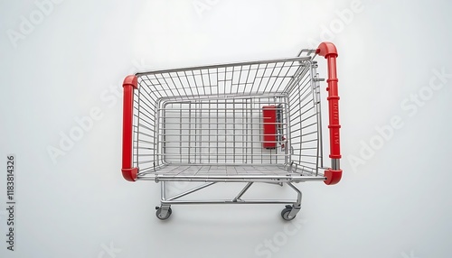 shopping, cart, streetcar, supermarket, grocery, store, retail, consumerism, empty, metal, chrome, red, handle, wheel, basket, container, purchase, buying, selling, good, product, market, commerce, business, trade, economy, consumption, client, client, retailer, sale, discount, price, cost, value, bargain, offer, deal, item, product