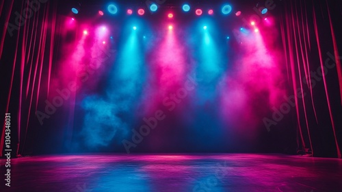stage, light, concert, empty, pink, blue, smoke, curtain, performance, show, background, dark, spotlight, theatre, event, music, festival, party, night, club, arena, illumination, glow, ray, vibrant, atmosphere, design, texture, abstract, colours, energy, power, dramatic, mysterious, magic, fantasy, scene, setting, entertainment, illustration, mood, concept, visual