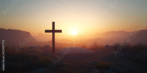 cross, tomb, sunrise, empty, resurrection, dawn, light, morning, sacred, spirituality, religious, holy, faith, spiritual, easter, church, symbolism, biblical, belief, christian, rebirth, sun ray, god, hope