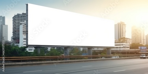 Empty white billboard signage advertising signs on the side of highway. Mockup advertisement concept. Generative ai