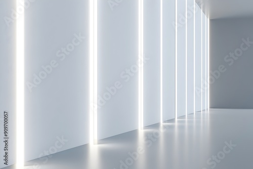 Empty white interior space background with illuminated walls for minimalist gallery room design