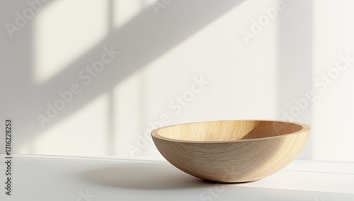 bowl, wooden, empty, white, surface, sunlight, shadow, light, minimalist, interior, photo, still life, design, product, display, wooden bowl, natural light, shadow play, home decor, decor, studio, minimalism, food, kitchen, dining, table, background, presentation, lighting, image, three-dimensional, rendering, vessel, round, natural, simple, clean, modern, home, interior design, empty space