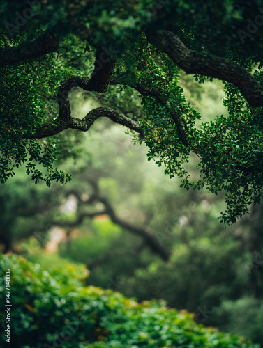 Enchanted Forest Lush Greenery and Ancient Oak Branches