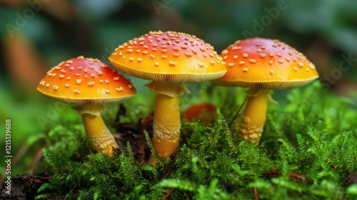 Enchanted Fungal Wonders: A Captivating Natural Realm of Hallucinogenic Mushrooms in Lush Green Glow