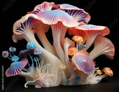 Enchanted Night in the Mushroom Forest,Colorful Psychedelic Mushrooms, Conceptual Botanical Designs