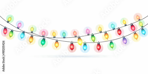 Enchanting Flat Holographic Christmas Lights: A Vibrant Scene with Twinkling Effects Captured in Slow Motion for a Festive Glow - Vector Illustration