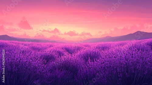 Enchanting Lavender Fields at Sunset with Majestic Mountains