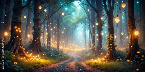 Enchanting Night Forest: Mystical Glow & Bokeh Lights
