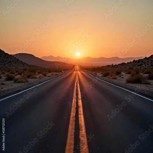 sunset, orange sky, scenic view, dusk, empty road, serene, isolation, wilderness, peaceful, calmness, adventure, nature, horizon, driving, road trip, dramatic sky, remote, immensity
