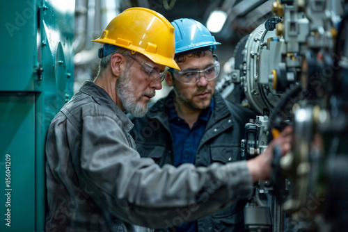 inspecting, machinery, industrial, plant, safety-gear, goggles, professional, maintenance, equipment, technology, factory, men at work, engineering, teamwork, industry, technical, occupation, working, senior, expertise, manufacturing, bearded, male, collaboration, mechanic, repair, workshop, detailed, labor, indoor, troubleshooting, construction, men at work, work, safety, hard hat, helmet, people, builder, engineer, job
