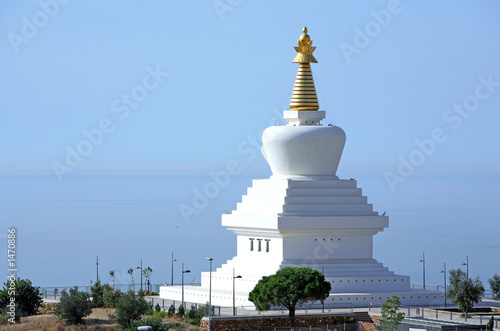 buddhist, buddha, temple, building, architecture, religion, religious, nirvana, stupa, new, modern, impressive, beautiful, enchanting, lucky, view, high, top, sea, white, gold, gold, church steeple, point, square, amazing, church, follower, buddhism, faith, spain
