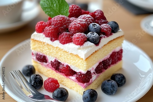 Enticing Berry Layered Cake with Seasonal Fresh Raspberries and Blueberries : Generative AI