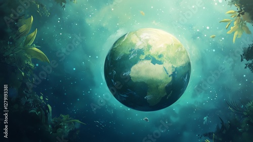 Environmental awareness earth illustration in lush jungle setting