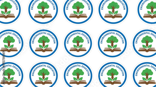 Environmental Education Logos, Tree Book Symbol for Global Recycling & Eco Learning, Flat Design in Green Blue, Repeating Pattern Vector Art