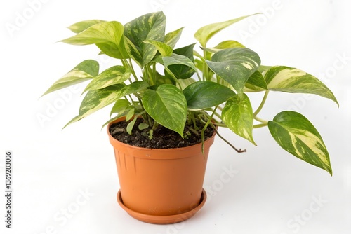 Epipremnum aureum with orange pot isolated on white background