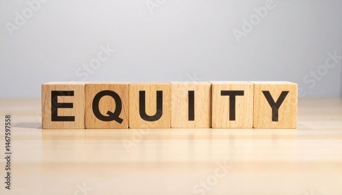 Equity wooden blocks displayed on minimalist table symbolizing ownership in modern workspace