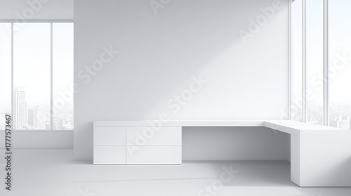 ergonomic. Minimalist modern desk with clean lines and soft natural lighting, showcasing a contemporary workspace. real-estate listings.