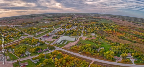canada, manitoba, aerial, drone, skyline, downtown, farming, community, fall, autumn, leaf, yellow, sunset