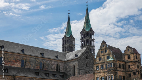 building, bamberg, city, building, architecture, church, maintenance, parish church, liturgy, religion, catholicism, bavaria, franc, cupola, faith, christianity, cathedral, bell tower, tour tourism, tradition, archdiocese, church steeple, cloud, repair, heaven