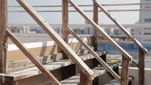 escalera rustica en casa, modelo antiquiada bajo el sol