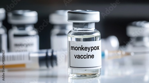 Essential depiction: image featuring a vaccine container labeled monkeypox vaccine, paired with text, critical role of immunization in combating monkeypox virus, essential for public safety, health.