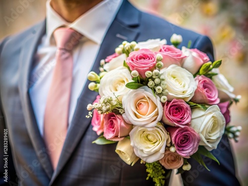 wedding bouquet, bridal bouquet, boutonniere, rose, white rose, pink rose, closeup, wedding flowers, floral arrangement, floral pattern, hi-res