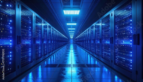 Ethereal Blue: Deep Dive into a Modern Data Center's Illuminated Server Racks