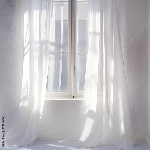 Ethereal Curtain Framing Bright Window in Peaceful Interior Space