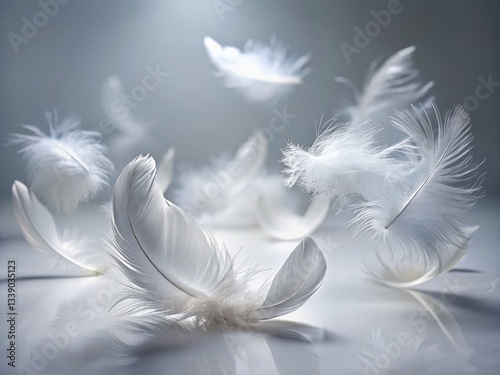 Ethereal Fluff: Simple Elegance, Delicate White Feathers on Pure Background