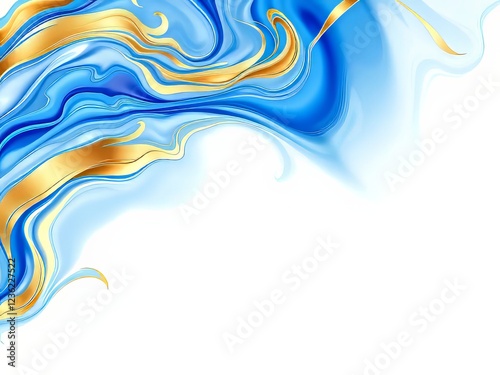 Ethereal Golden Fluid Art Abstract Background - Vibrant Blue Swirls