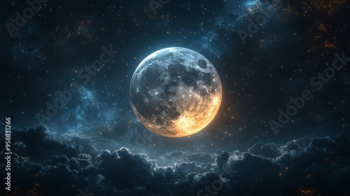 moon, cloud, night sky, galaxy, star, celestial, cosmic, astronomy, space, glow, illumination, aethereal, surreal, dreamlike, fantasy, mysterious, night, astrological, sky, universe, atmosphere, dark sky, milky way, planetary, outer space, deep space, cosmos, crescent, space exploration, full moon, serene, tranquil, peaceful, majestic, nightscape, twilight, stellar