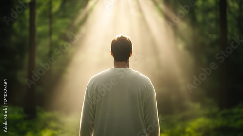 aethereal, silhouette, forest, clearing, mist, tree, sunlight, guidance, calmness, spirituality, nature, divine, illumination, serenity, enchantment, mystique, beauty, solace, harmony, symbol, light, peace, wisdom