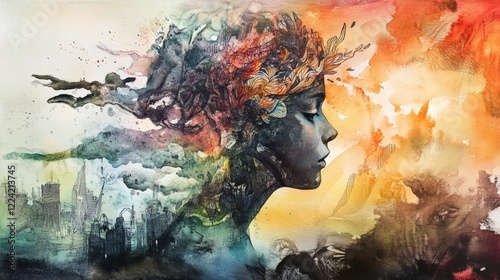 portrait, artwork, illustration, abstract, profile, colours, woman, silhouette, creative, nature, expression, fantasy, imagination, watercolor, texture, beauty, emotion, feeling, art, design, concept, landscape, scenery, dream, inspiration, vision, elegant, artistic, flowing, floral, leaf, vibrant, surreal, female, head, symbol, pattern, style, modern, unique, shape, contrast, harmony, representation, identity, idea, contemplation, serenity