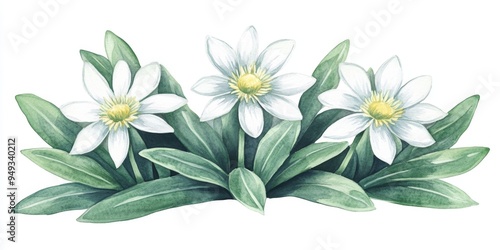 edelweiss, watercolor, floral, botanical, illustration, isolated, seasonal, minimalist, elegant, design, artistic, clip art, flower, bloom, winter, alpine, mountain, nature, delicate, brushstroke, texture, gradient, creative, marketing, cultural, symbolism, poster, wallpaper, digital, art, white, snow, cold, beauty, organic, natural, decorative, contemporary, stylised, expressive, soft, gentle, pure, romantic, abstract, graphic, template