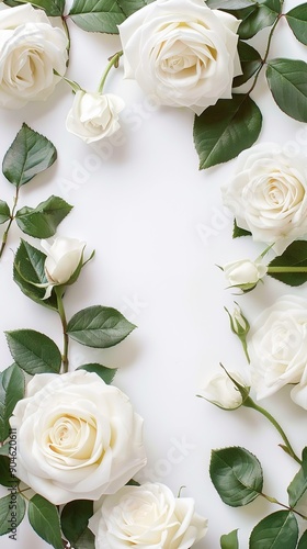 wedding, rose, white, background, minimalist, design, studio, lighting, detail, symmetric, composition, natural, light, sharpness, definition, contrast, photo, high-quality, professional, clear, sharpened, floral, frame, elegant, romantic, pure, clean, modern, style