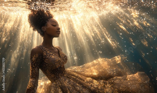 aethereal, woman, gold, underwater, elegance, light, shimmer, dress, fashion, beauty, artistic, serene, graceful, flowing, magical, dreamy, surreal, sparkle, gold, fantasy, peaceful, enchanting, glamour, photo, tranquil, aglow, stunning, mystic, sensual, delicate, portrait, exquisite, captivating, visionary, mysterious, refined, aesthetic