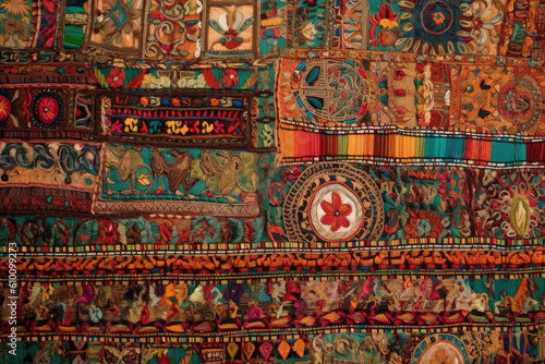 Ethnic Motifs Tapestry captivating tapestry featuring an array of intricate and colorful motifs inspired by traditional ethnic design, generative ai