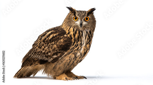 eagle owl, owl, bird, wildlife, animal, nature, bird of prey, bird of prey, majestic, isolated, white background, fauna, avian, predator, powerful, eye, feather, beak, talon, hi-res, detailed, image, photo, picture