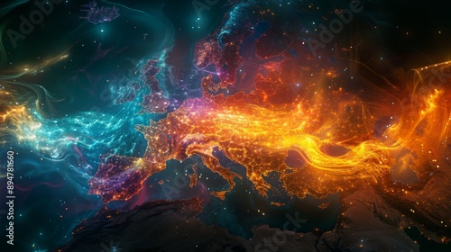 europa, night, city lights, glowing, map, abstract, neon, artistic, vibrant, colourful, energy, modern, futuristic, illuminated, geography, urban, electrical, network, digital artwork, connectivity, technology, continent, landscape, neon light, earth, night time, shining, high-coloured, bright, magical, sparkling, fantasy, surreal, dreamlike, electromagnetic, high technology, telecom, science fiction, cyberspace, aglow, cosmopolitan, radiance