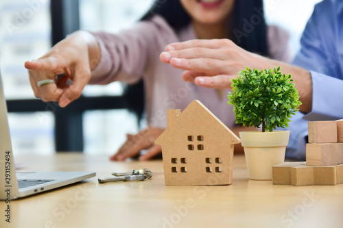 European and Asian couples are buying a house and entering into a house purchase contract,People are signing house purchase contracts