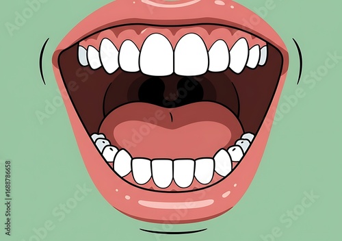 Exaggerated Open Mouth with Bright White Teeth for Expression and Communication