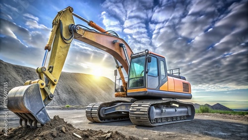 Excavator Loader Machinery in Construction Industry - Heavy-Duty Vehicles Illustration Set for Digging and Earthmoving