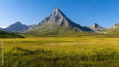 mountain, landscape, nature, scenic, vale, sky, field, green, blue, peak, environment, wilderness, grass, rock, scenery, hill, sunshine, daylight, horizon, elevation, terrain, vegetation, natural, summer, view, high, meadow, huge, ecology, flora, wild, rugged, slope, national park, panoramic, colours, beauty, calmness, clarity, serene, expansive, majestic, remote, vibrant, unspoiled, atmosphere