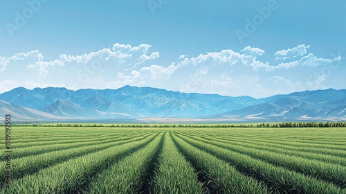 Expansive Panoramic View of a Serene Spring Green Field Landscape