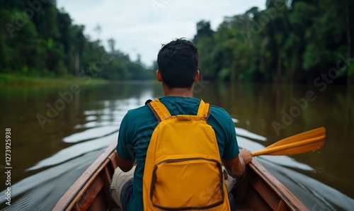 canoe, river, adventure, journey, exploration, backpacker, paddle, nature, alone, boat, water, tour tourism, travel, forest, voyage, leisure, male, vacation, relaxation, landscape, tree, foliage, greenery, tropics, waterway, solitude, lifestyle, recreation, destination, get-away, discovery, calmness, backpack, scene, undisturbed, peaceful, scenery, territory, back, view